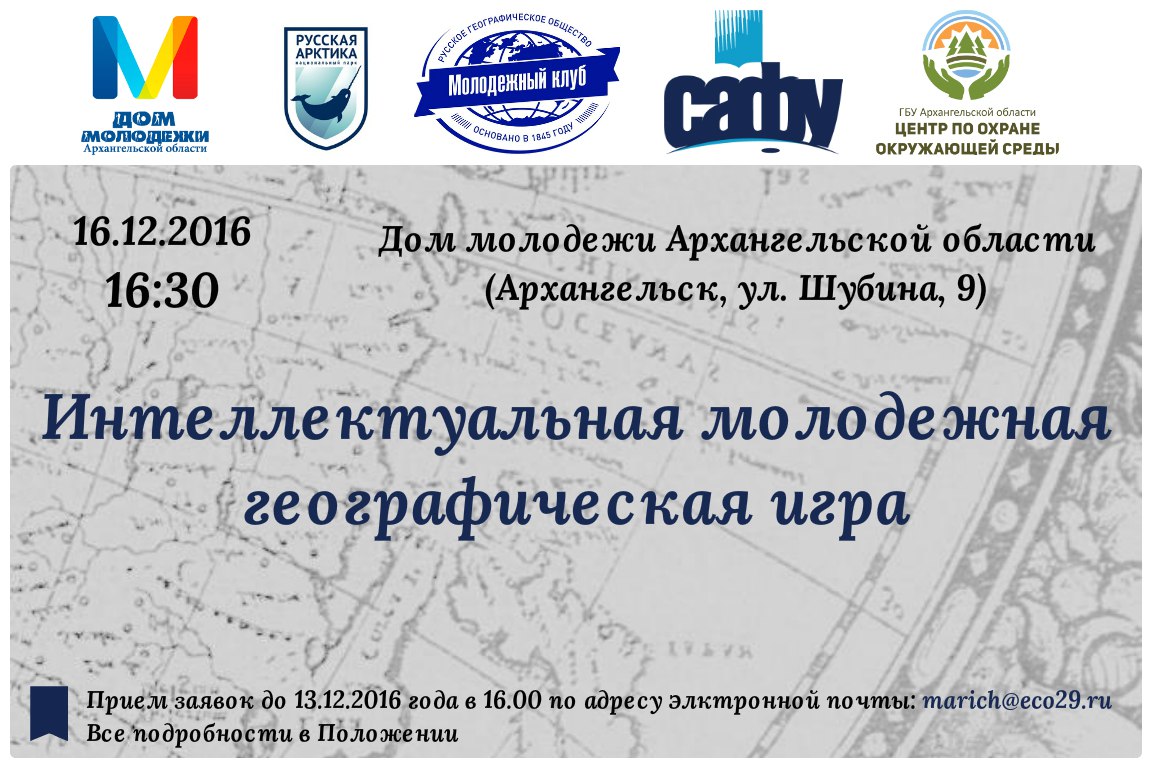 16 декабря в Доме молодежи впервые состоялась Интеллектуальная молодежная географическая игра. В игре приняли участие 14 команд из университетов, колледжей и школ Архангельска.