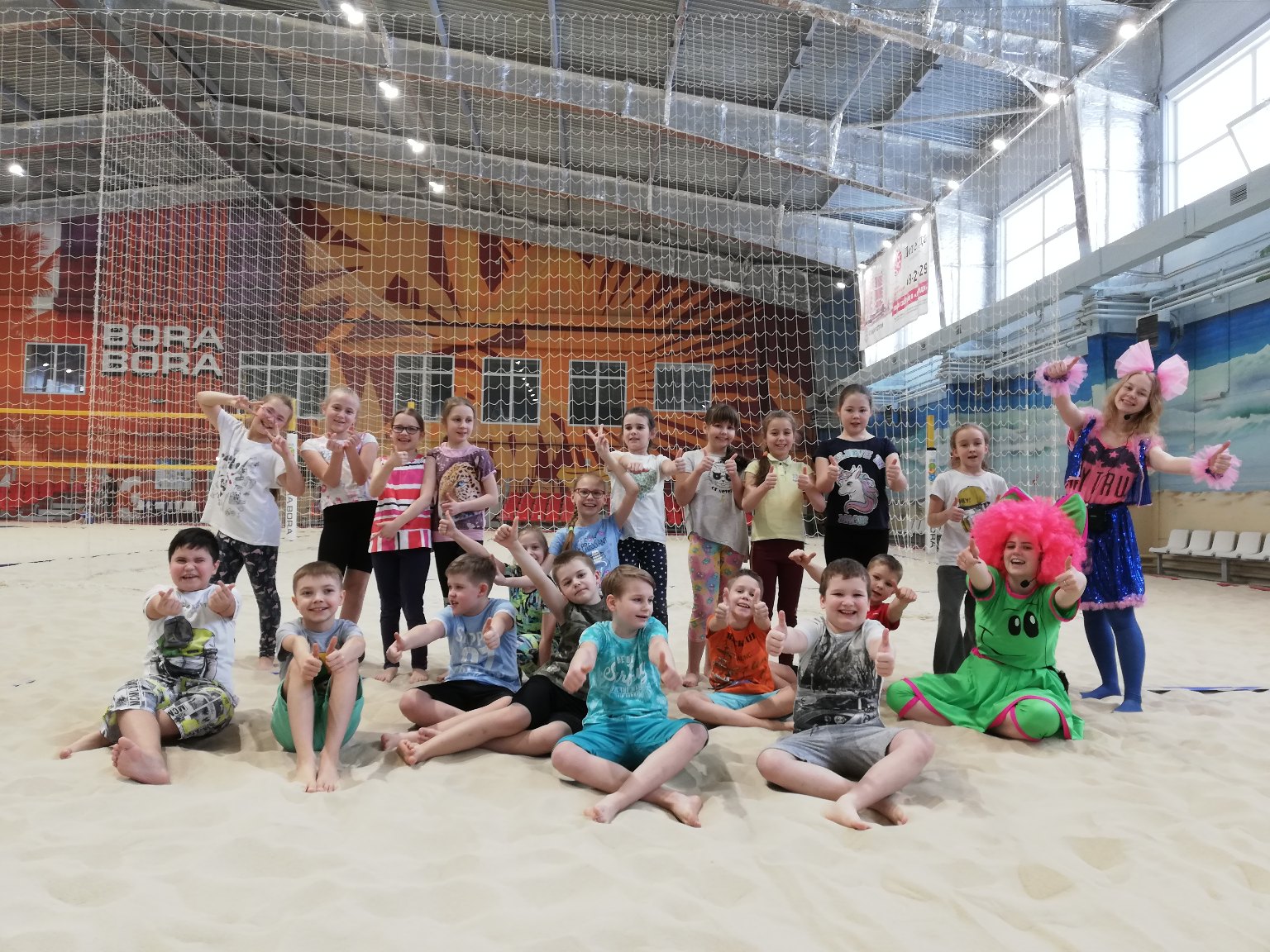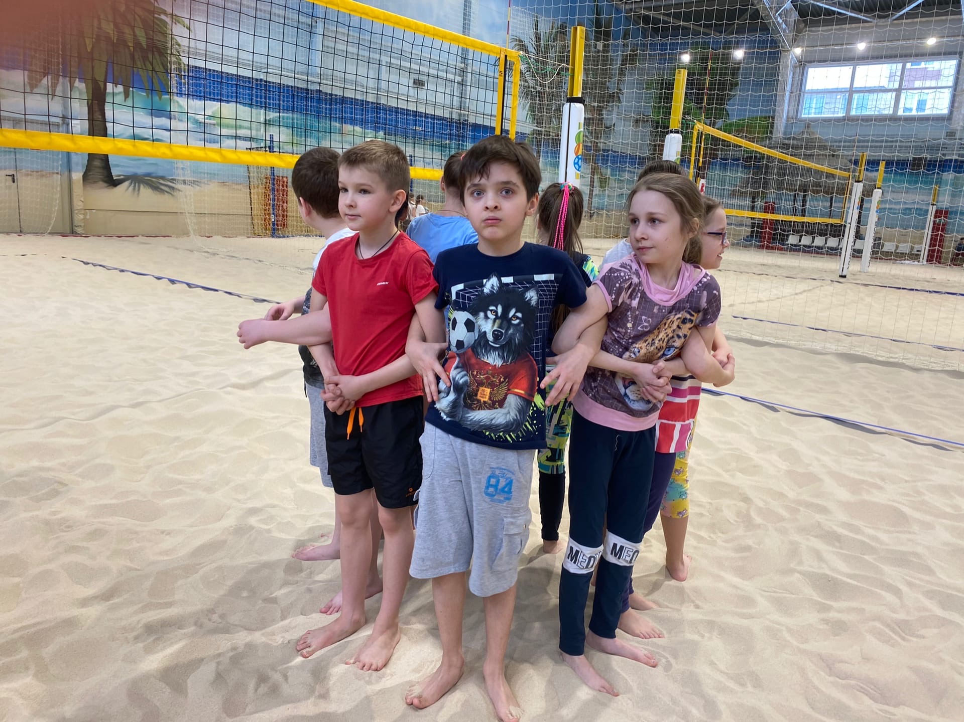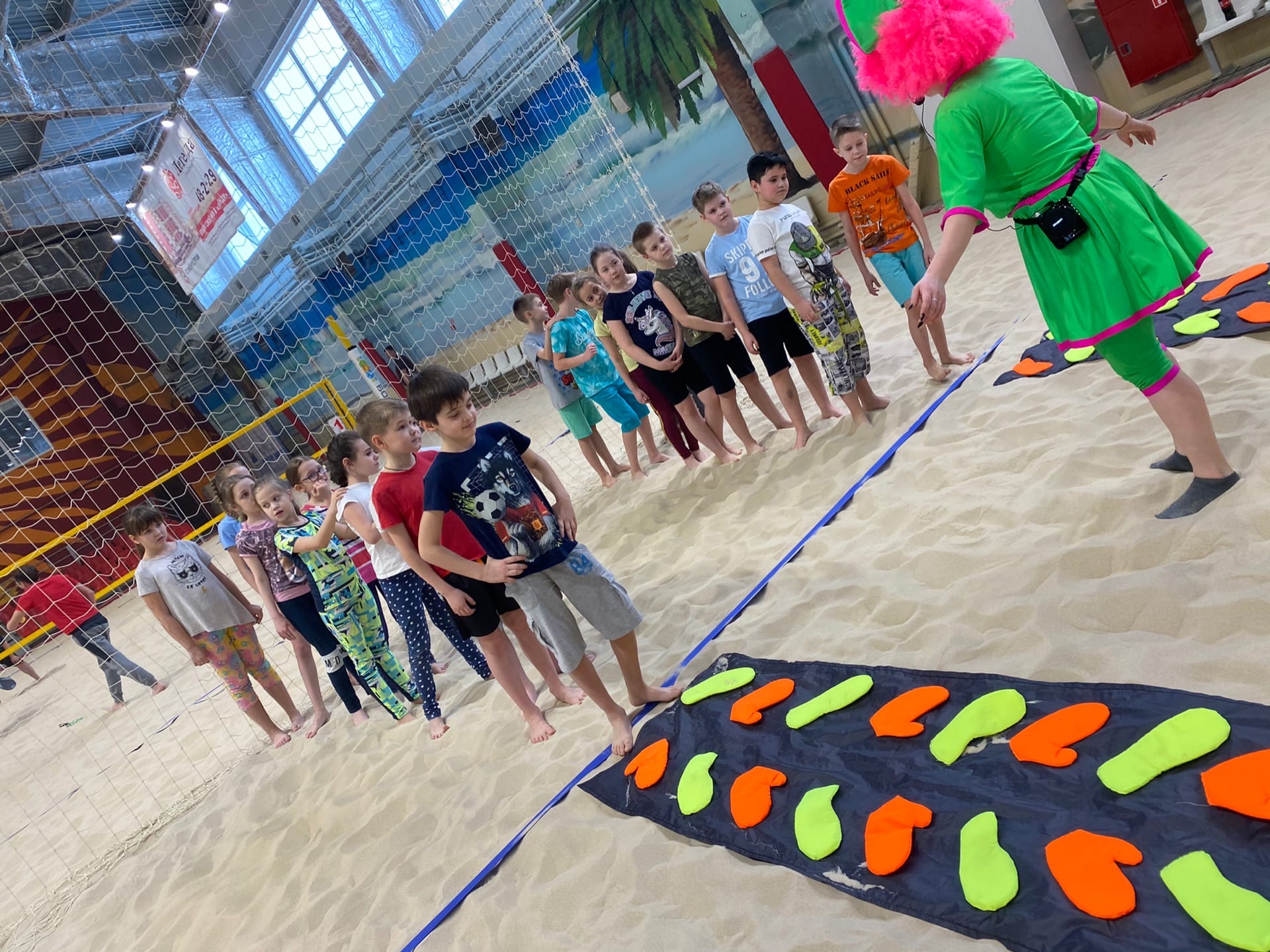 Из зимы мы попали в лето: комфортная температура, чистый тёплый песок, весёлая музыка. Для ребят здесь были проведены Весёлые старты. Мальчишки и девчонки бегали, прыгали, играли, участвовали в различных конкурсах, с удовольствием валялись на белом песке. Два часа пролетели для всех незаметно.
