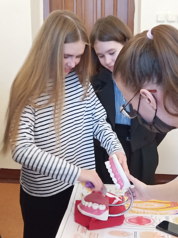 Сегодня, 25 февраля, в 7б и 8б классах состоялись Уроки здоровья, которые проводили волонтеры-медики Студенческого кабинета здоровья при СГМУ. Ребята прошли несколько этапов. На первом — им показали, как вести себя в экстремальной ситуации и оказать первую медицинскую помощь. На втором, как поддерживать здоровый образ жизни. На третьем этапе ребята познакомились с медицинскими инструментами. На четвертом этапе учащимся напомнили об индивидуальной гигиене полости рта. Все знания были подкреплены практически. Урок был интересным и познавательным. Мы надеемся на дальнейшее сотрудничество с начинающими медиками!