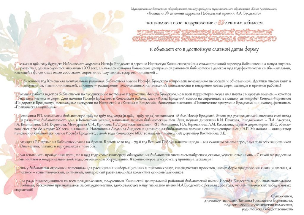 От всего коллектива поздравляем Коношская библиотека им.Иосифа Бродского с 85-летним юбилеем! 04.12.202004.12.2020 adminКомментировать